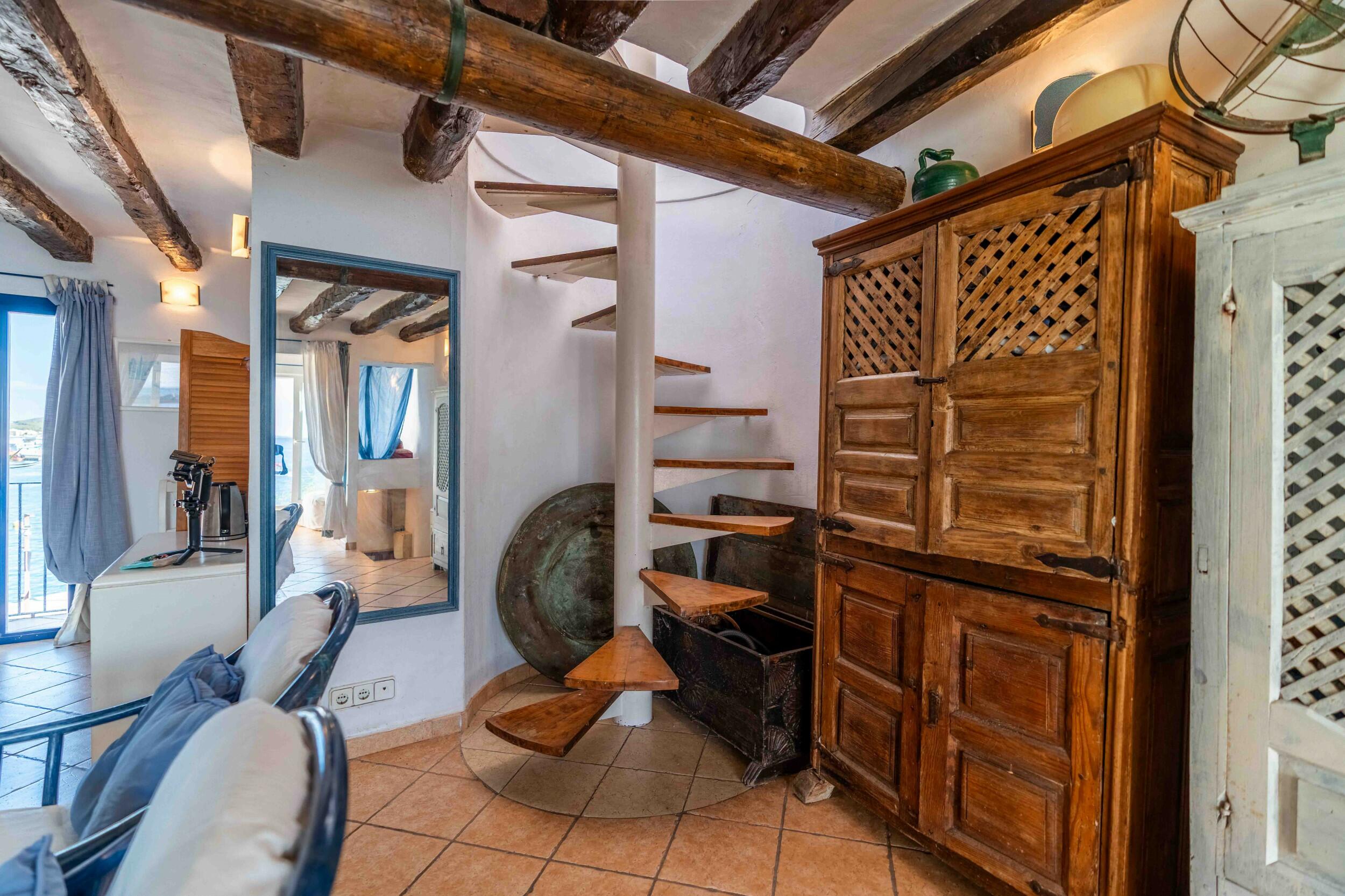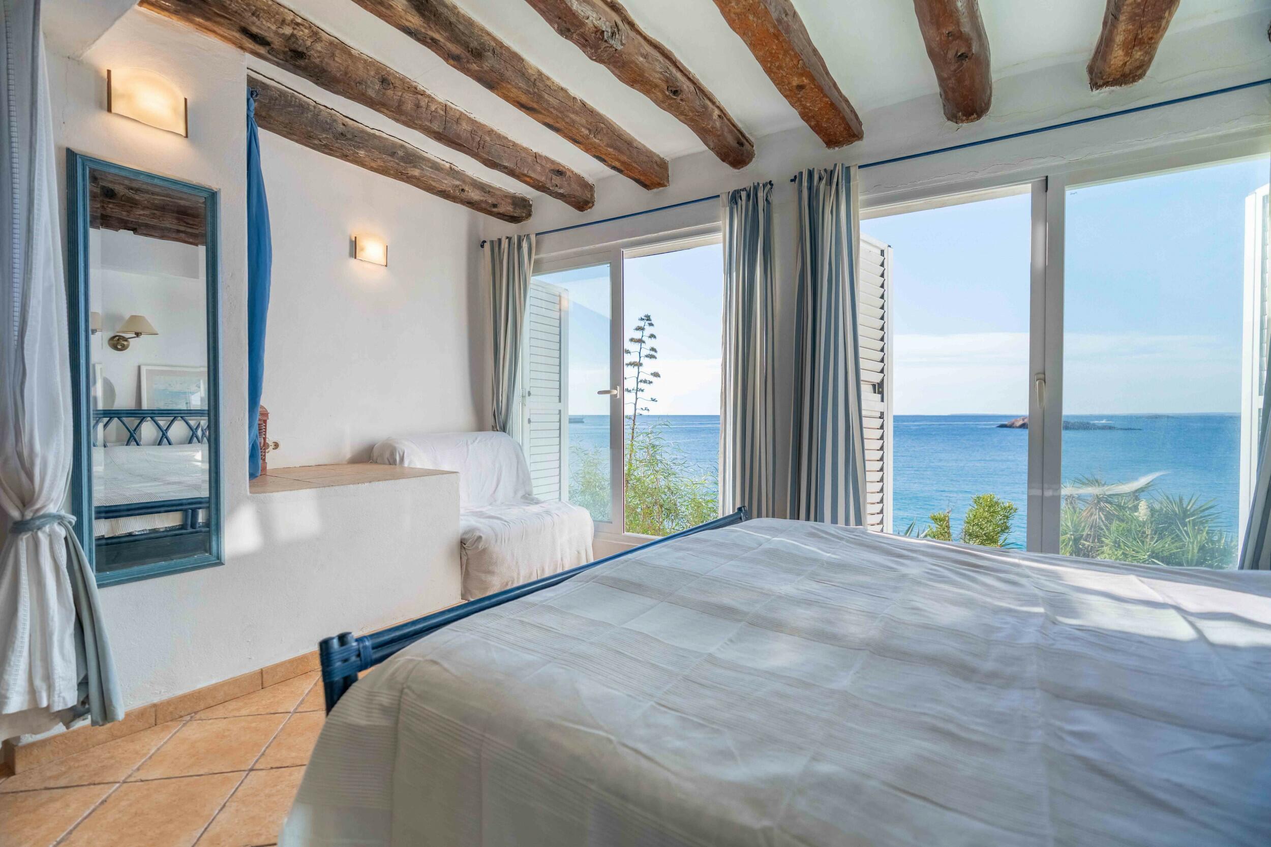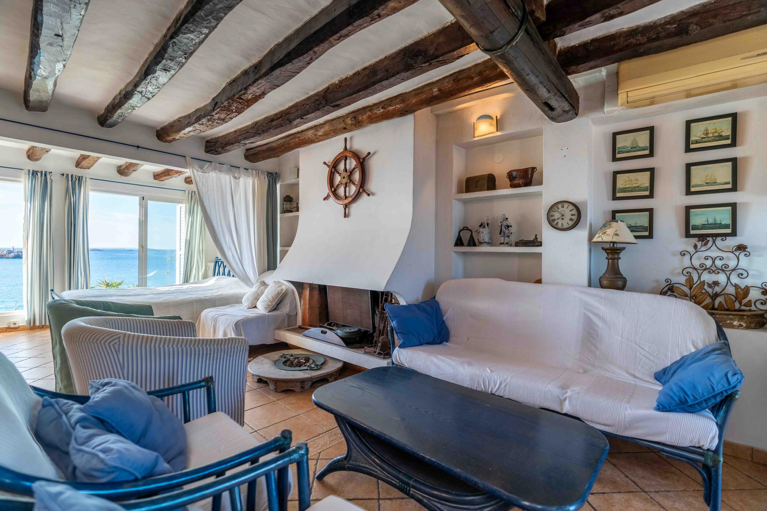 This very exclusive seafront apartment is located very close to Ibiza town and has direct access to the beach. Who resides here, can leave his car in principle without moving, because all amenities are within immediate reach.