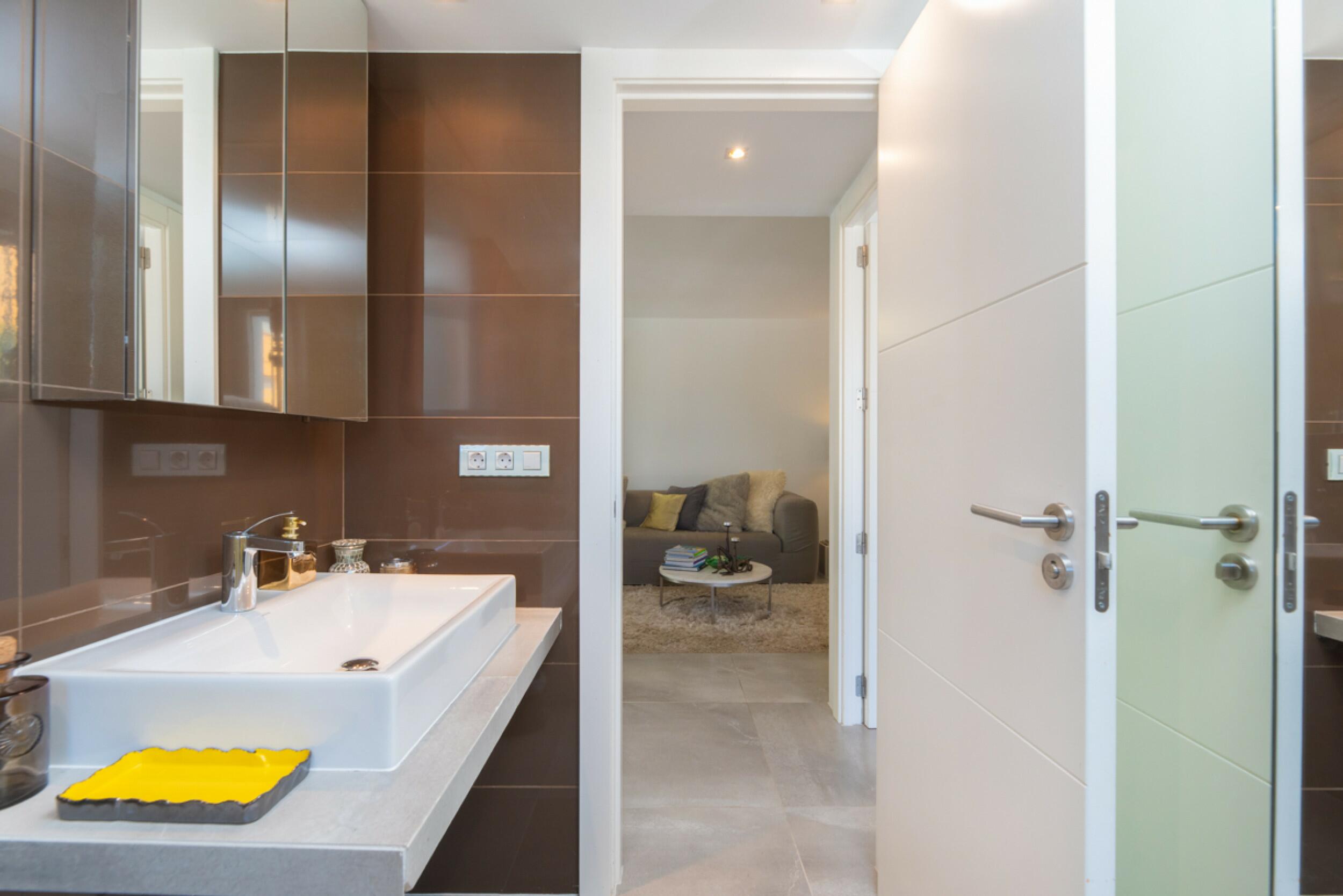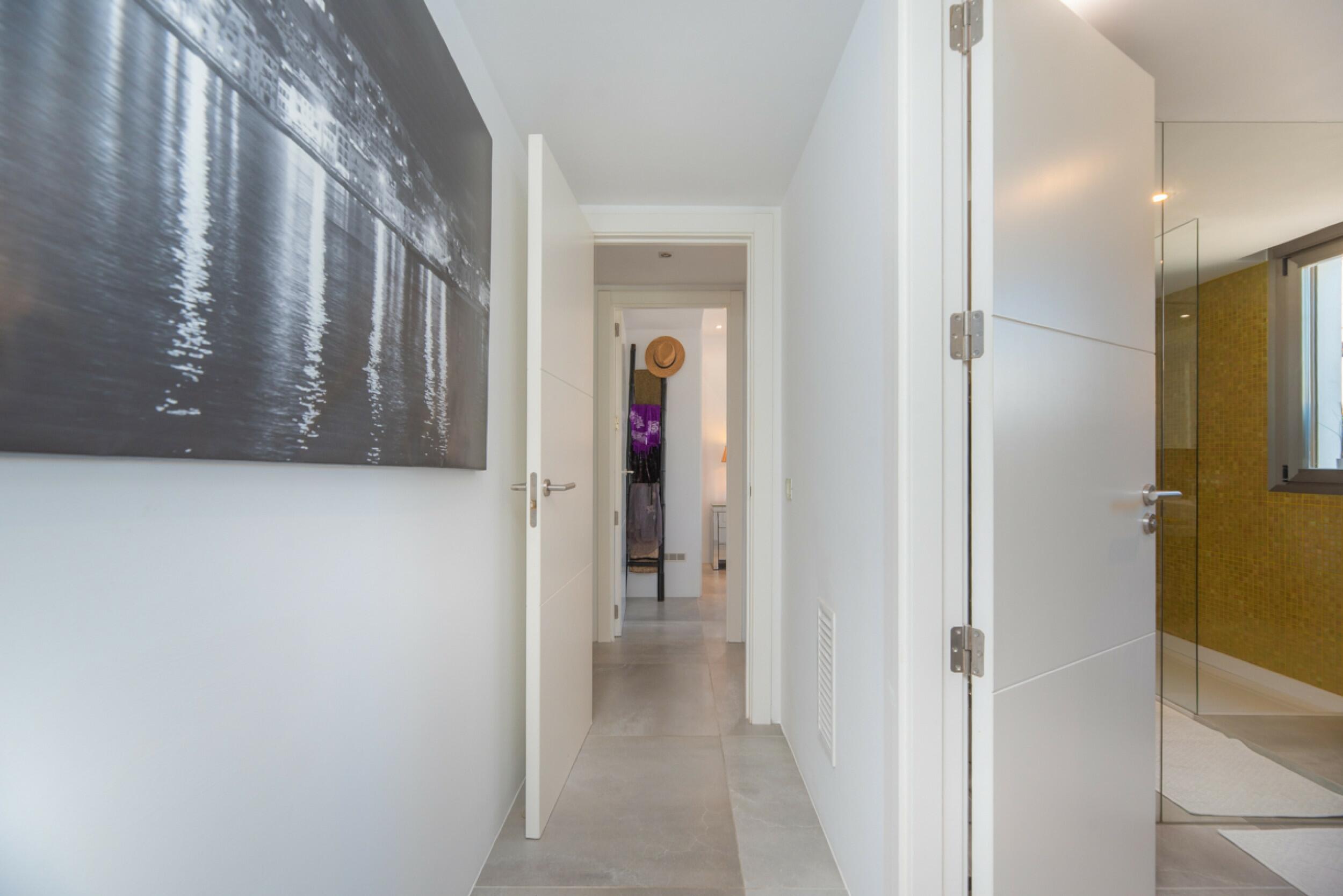 The property consists of a hallway that leads you, on the left, to the area of the two bedrooms, one double and one double en suite. To the right we find a guest bathroom next to the kitchen and living area, all in open-plan style, for greater harmony. Finally, in front of the living room we have a spectacular terrace with views to the sea, Dalt Vila and Formentera.