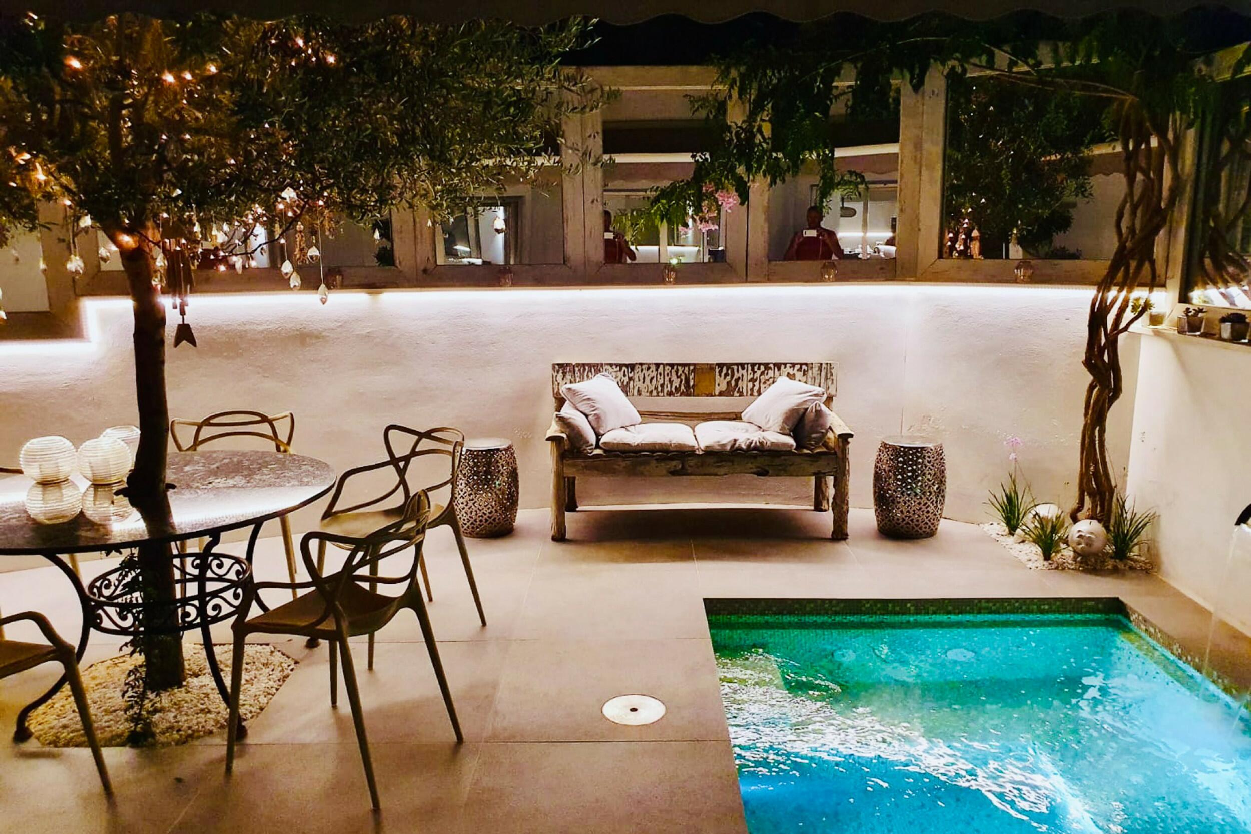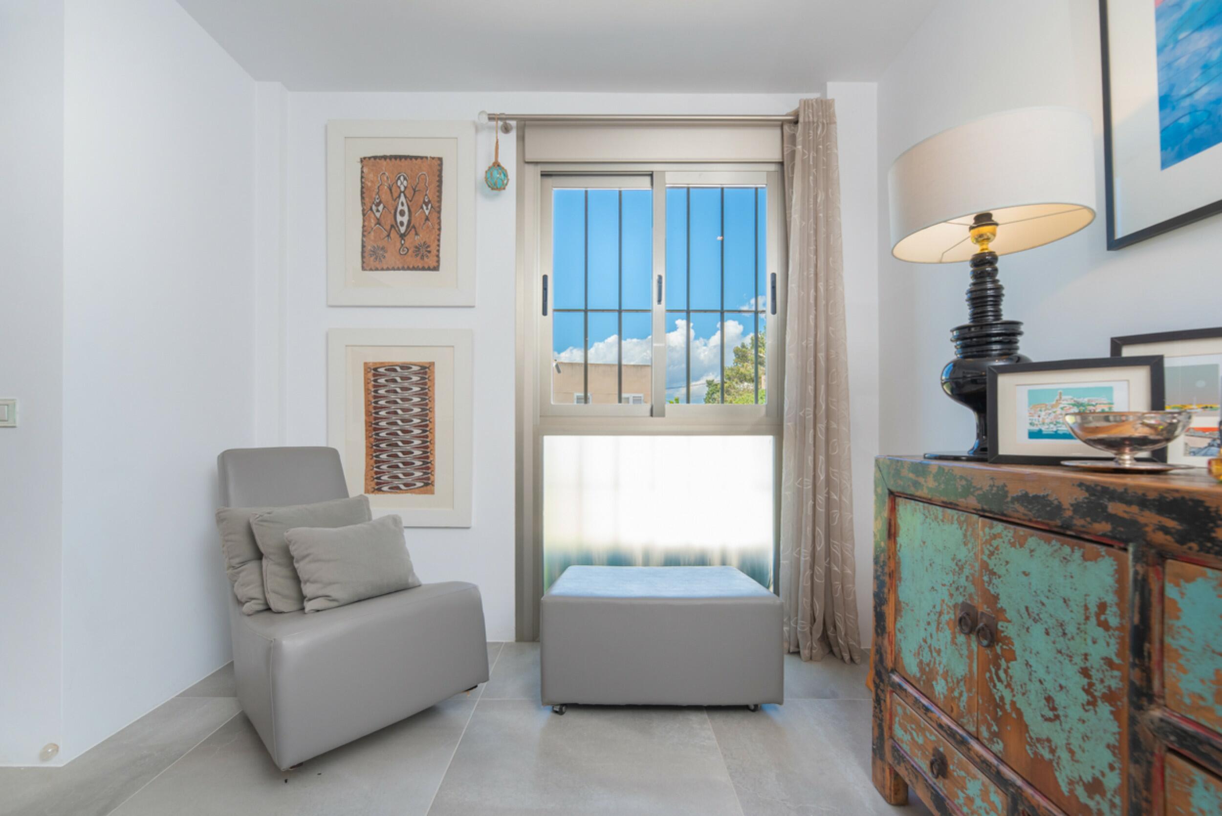 Located in Botafoch, a quiet area just a few minutes from the beach and at the same time close to one of the liveliest areas of Ibiza. Its great location has many advantages, such as being a 15 min walk or 5 min drive from Ibiza town and about 15 min drive from the airport. Restaurants, bars and the Marina Botafoch harbour are close by but far enough away for peace and quiet.
