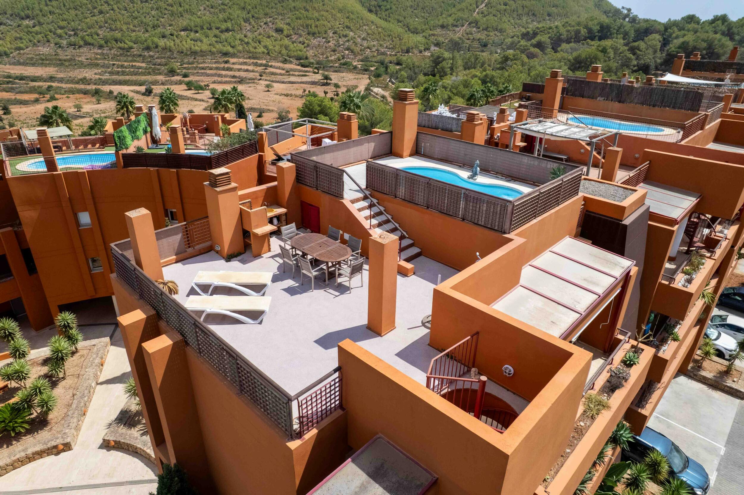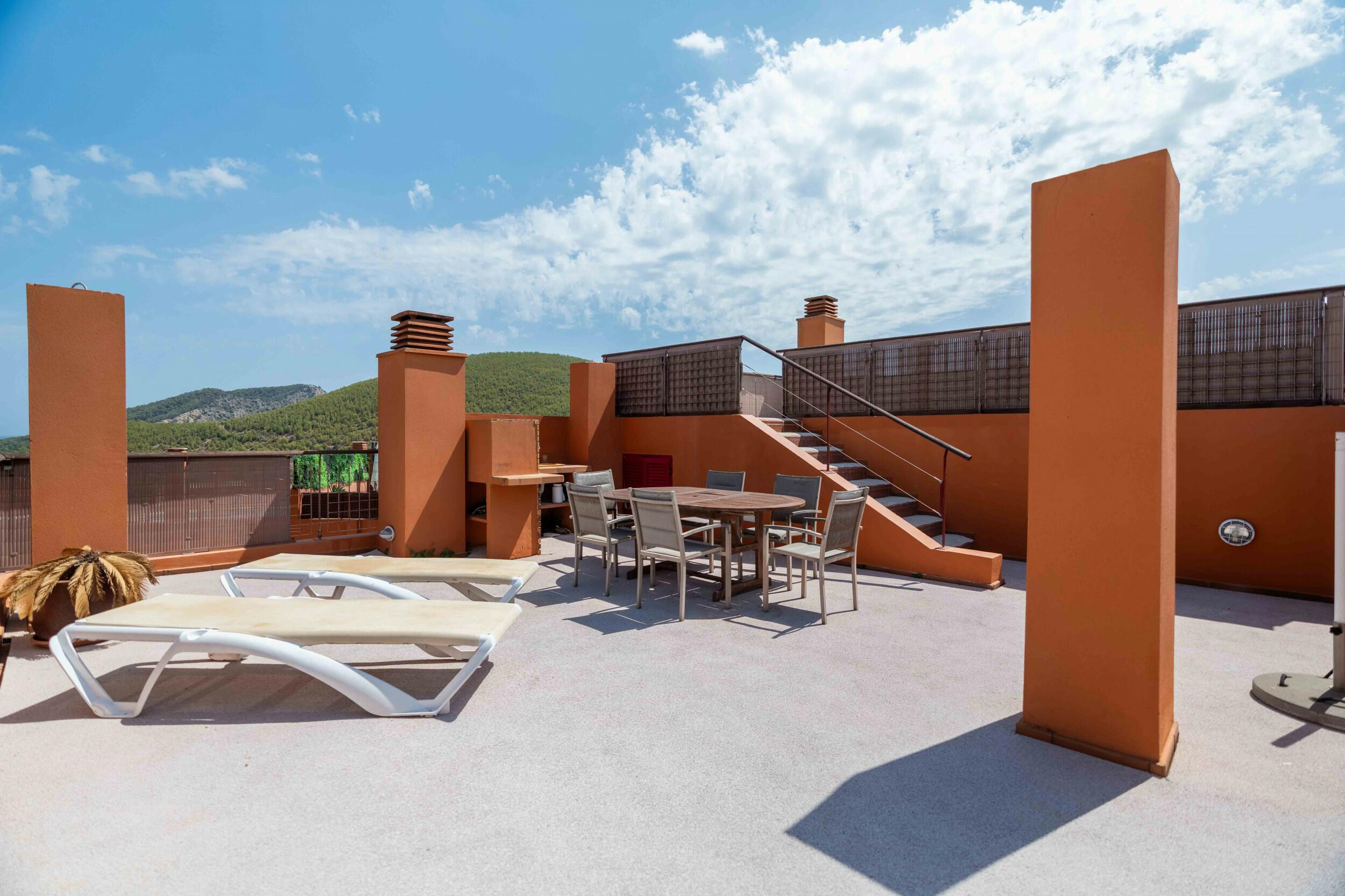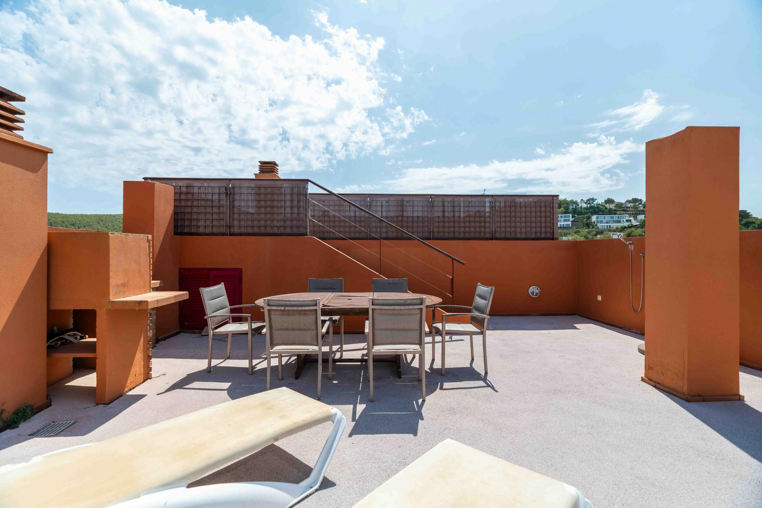 - Roof terrace: A spacious roof terrace with panoramic views to the sea and Formentera.