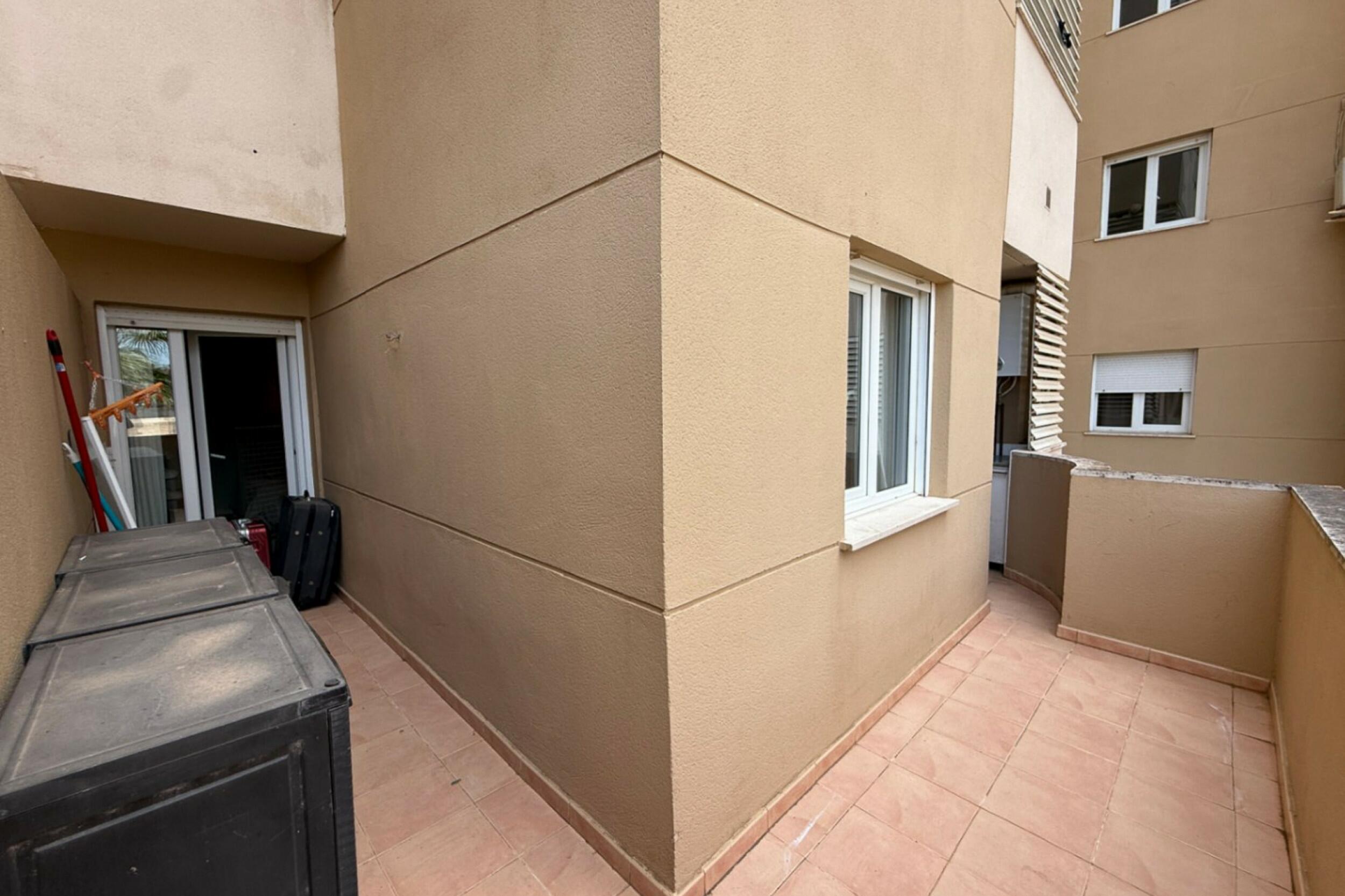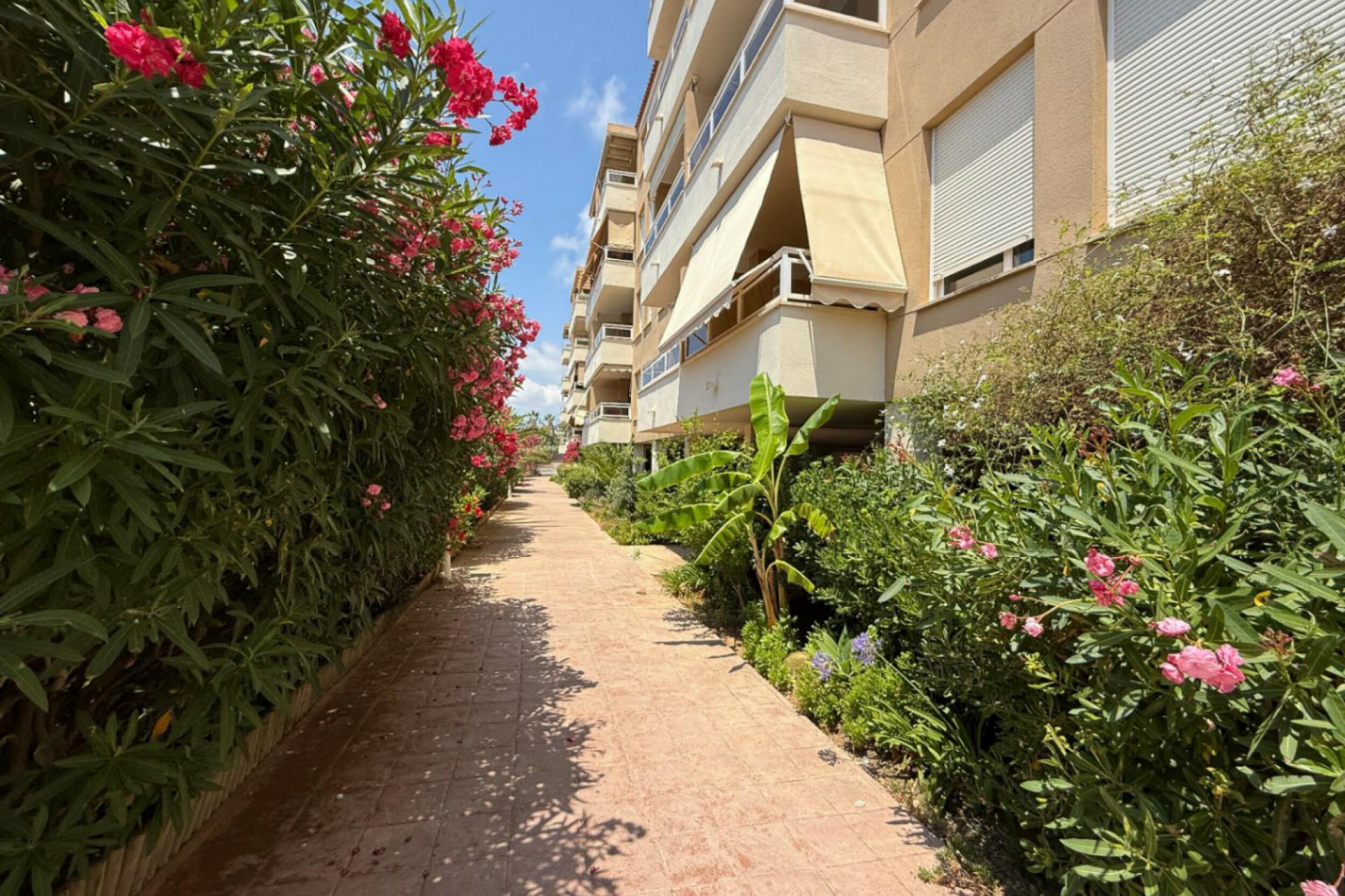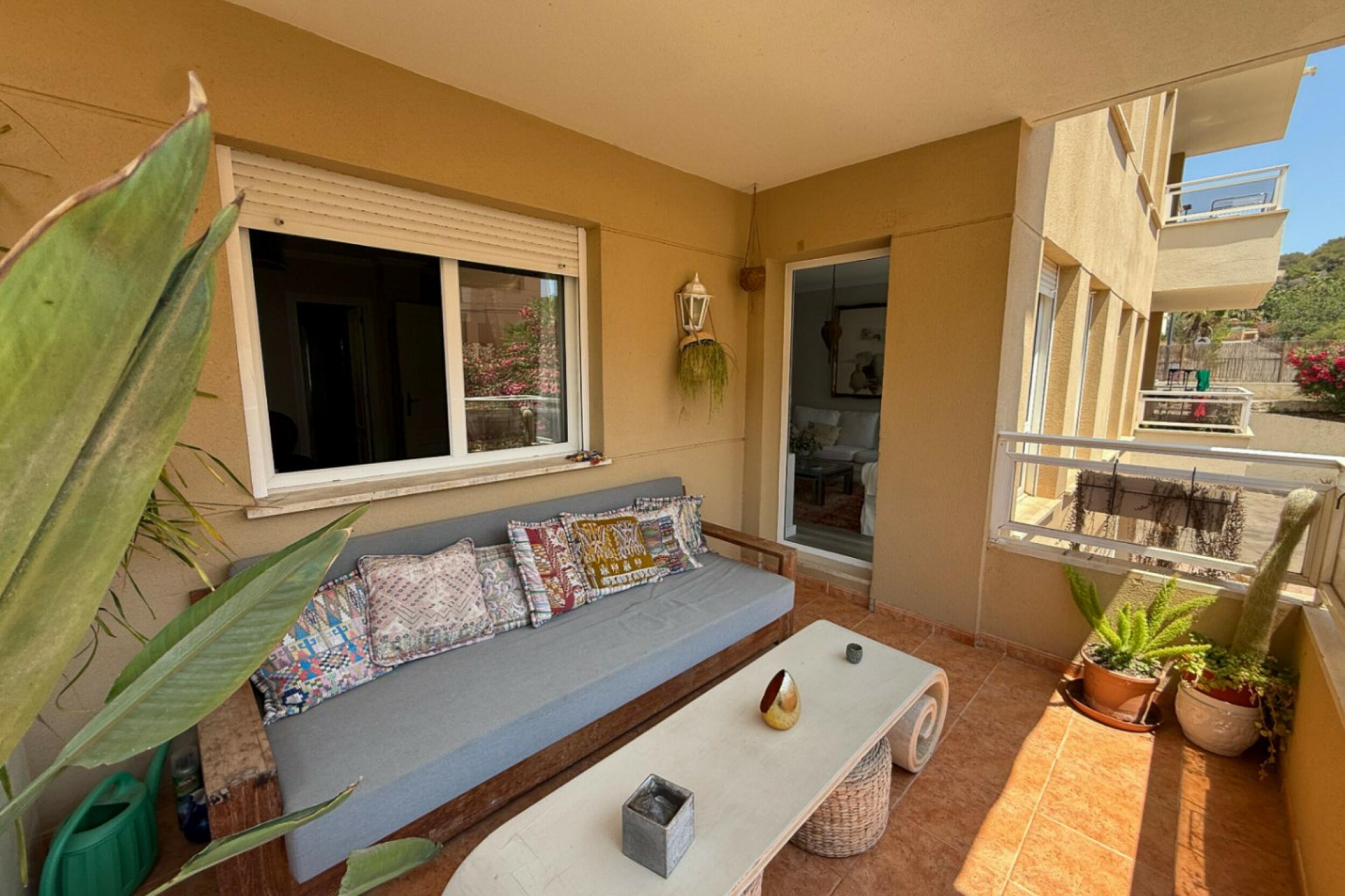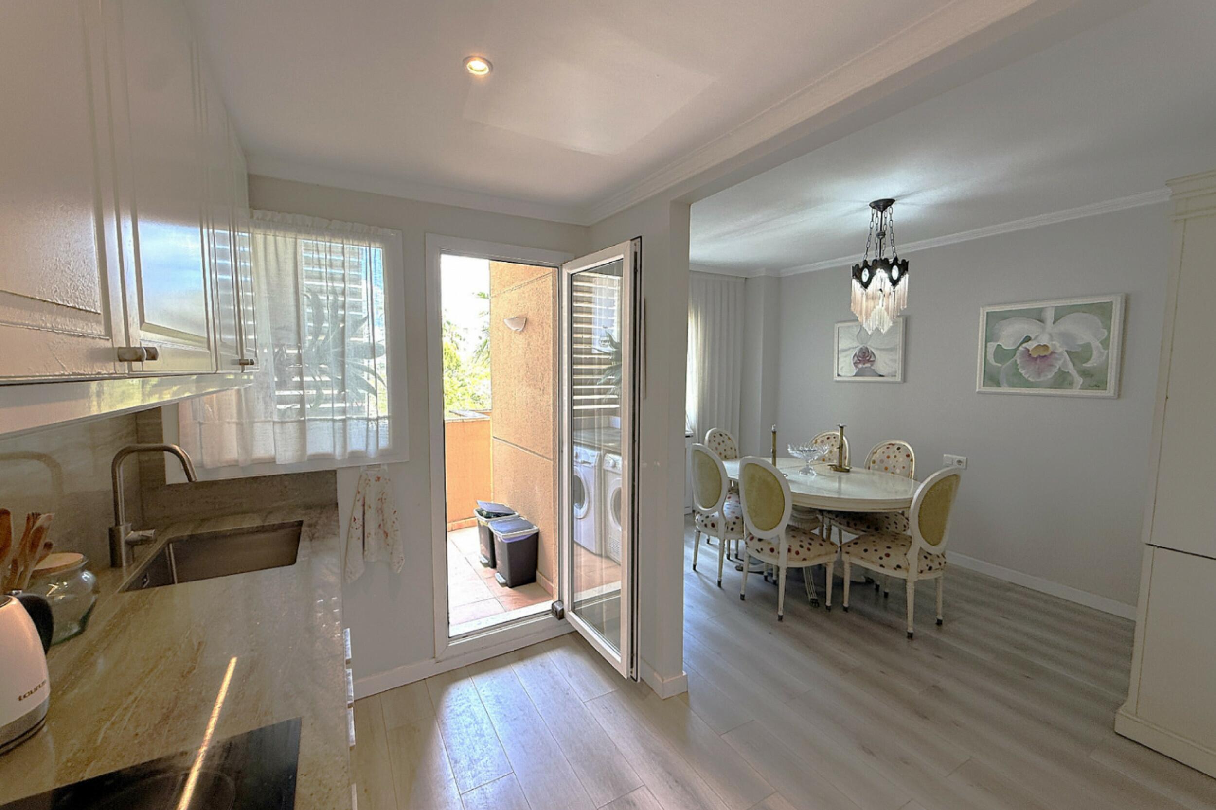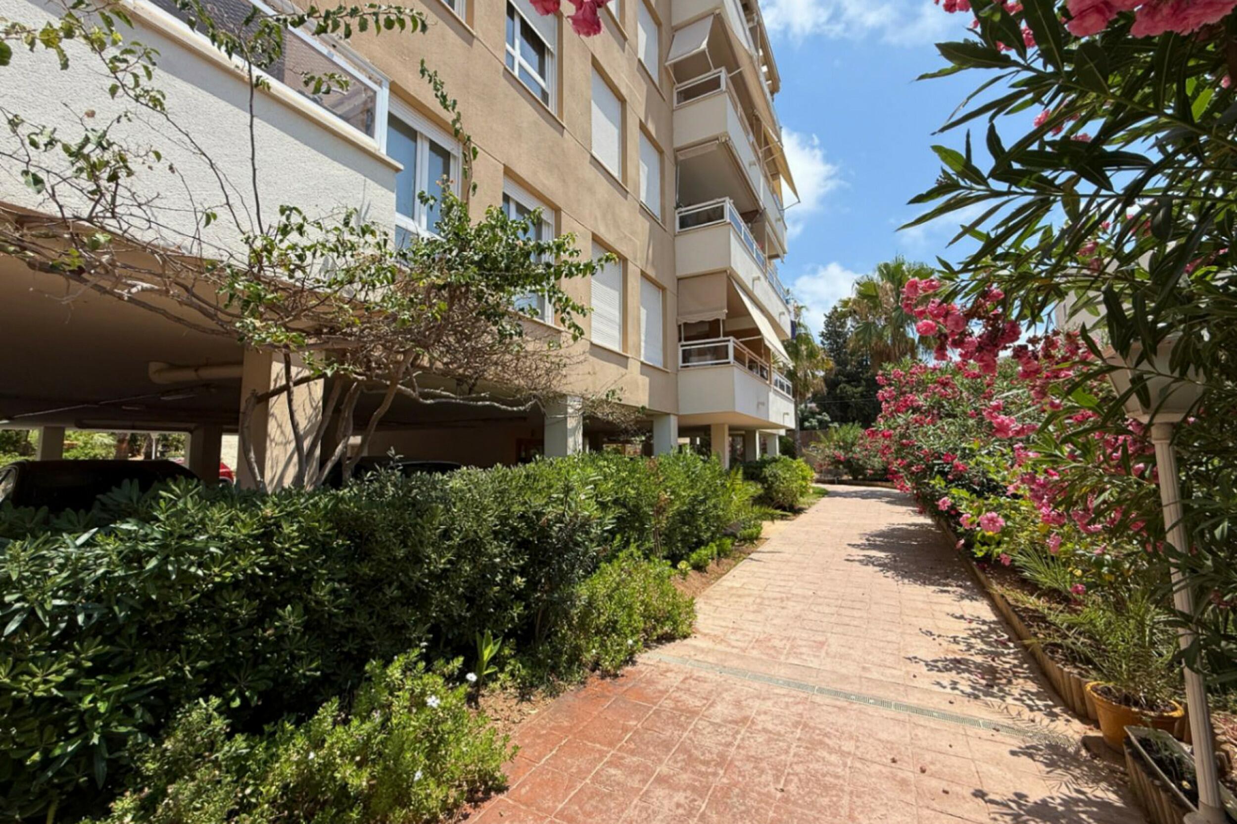 A private terrace extends the living area outdoors, offering a pleasant setting to relax and enjoy the fresh sea breeze. Residents of the Bossa Mar complex benefit from a generous communal swimming pool set within a gated environment, along with direct access to the beach promenade.