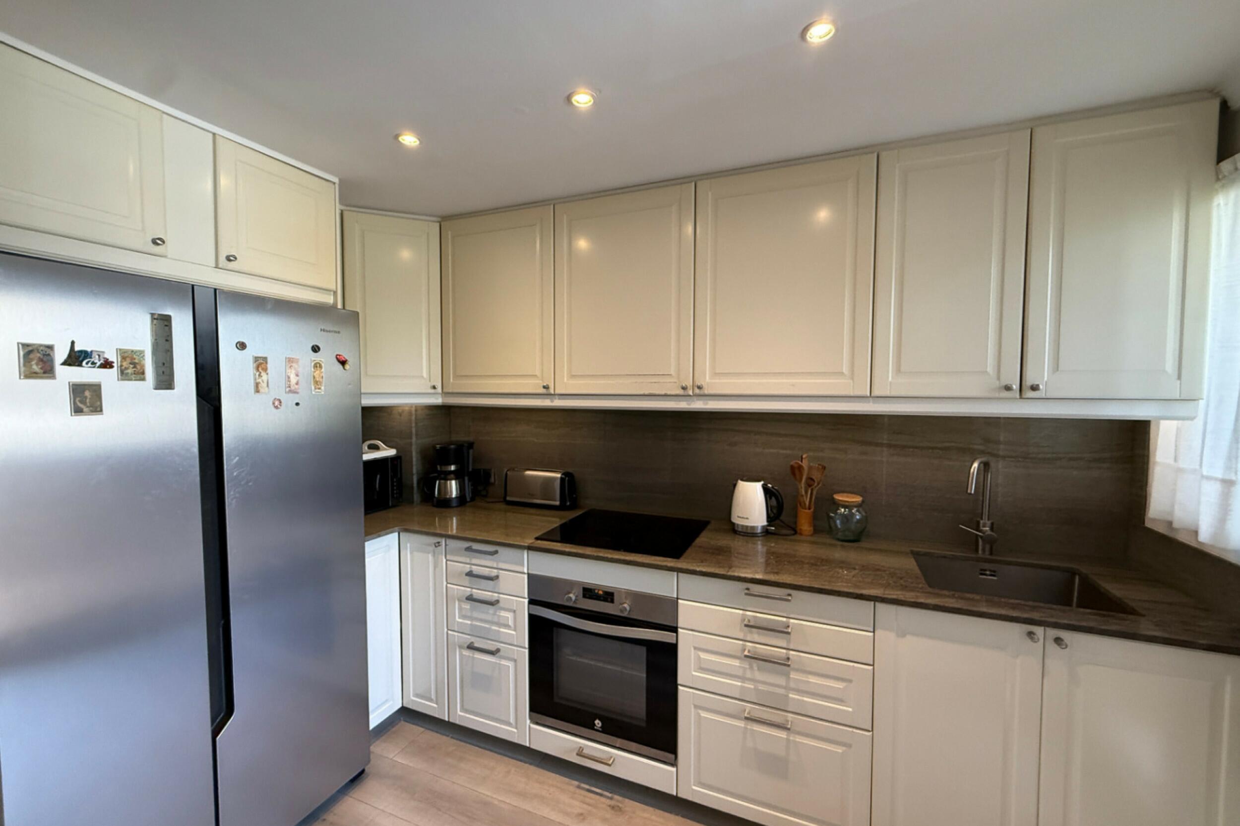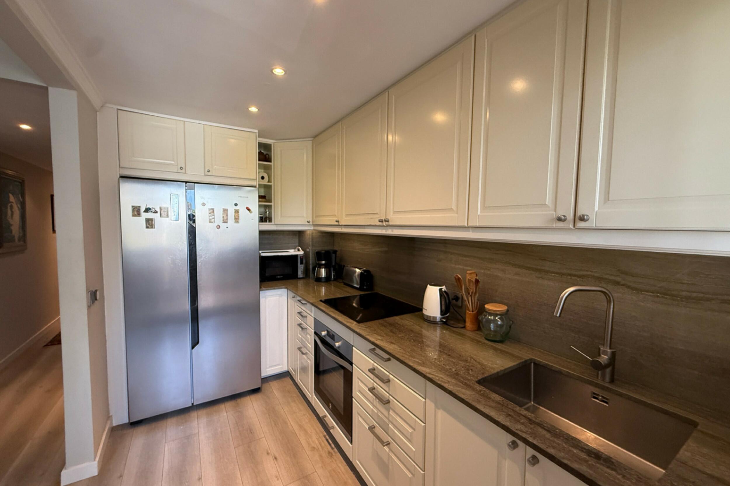 The apartment is equipped with essential comfort features, including centralised air conditioning and double glazing, ensuring a practical year-round residence or effortless holiday retreat.