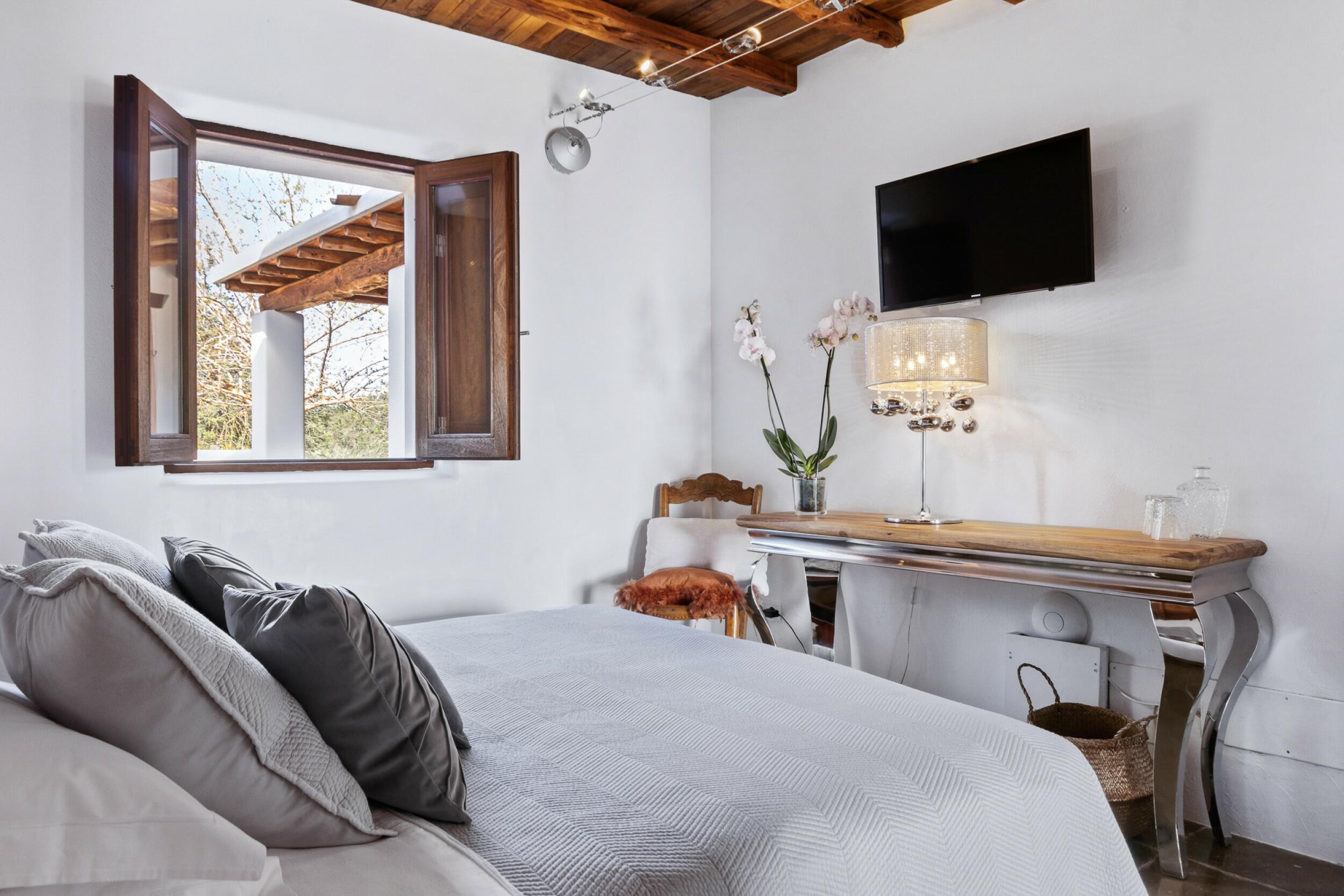 <15 mins to Airport<15 mins to Beach<15 mins to Ibiza TownAir-ConditioningDryerFenced-in plotInternetParkingPeaceful areaSatellite TVSea ViewsSwimming PoolTerraceWashing Machine