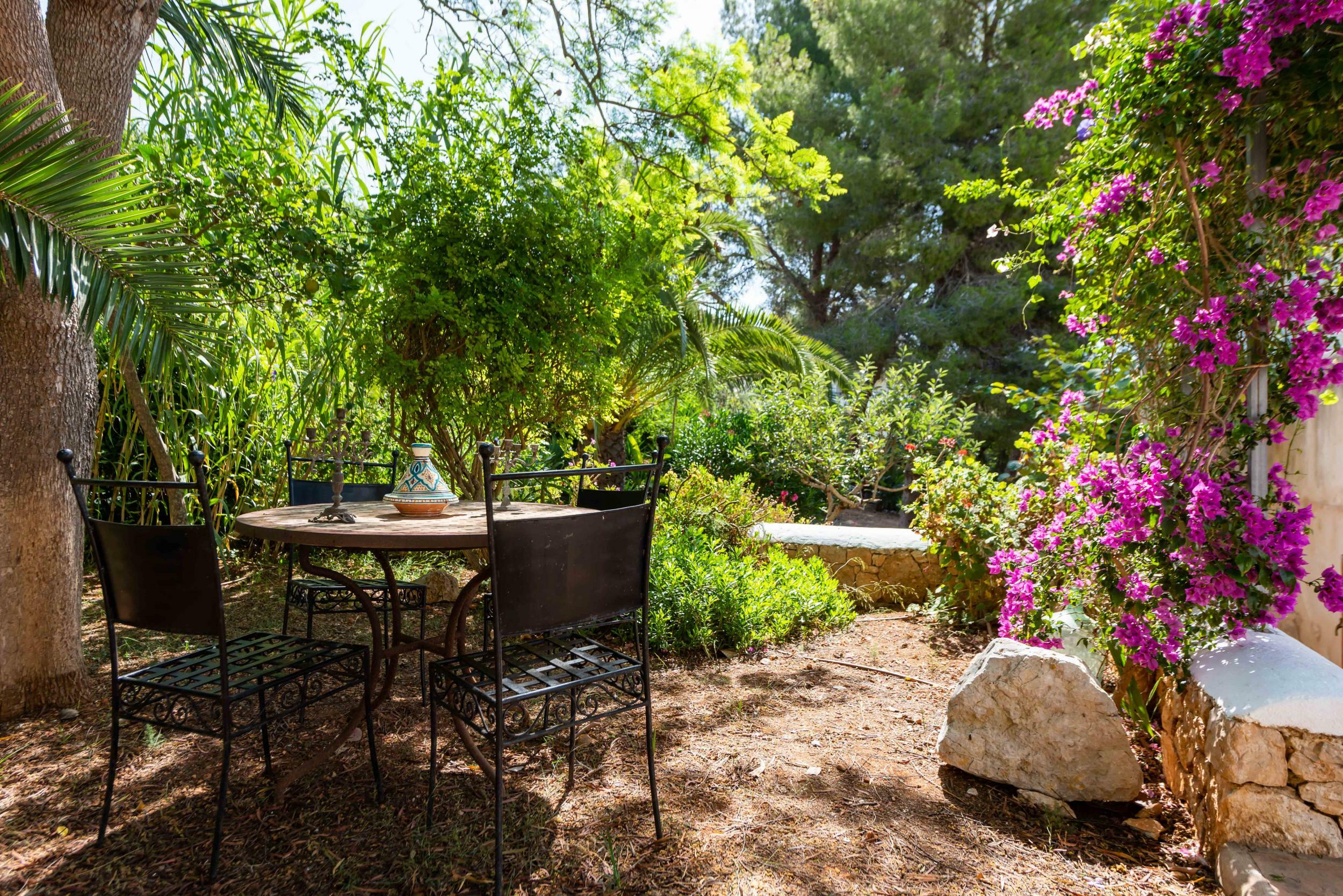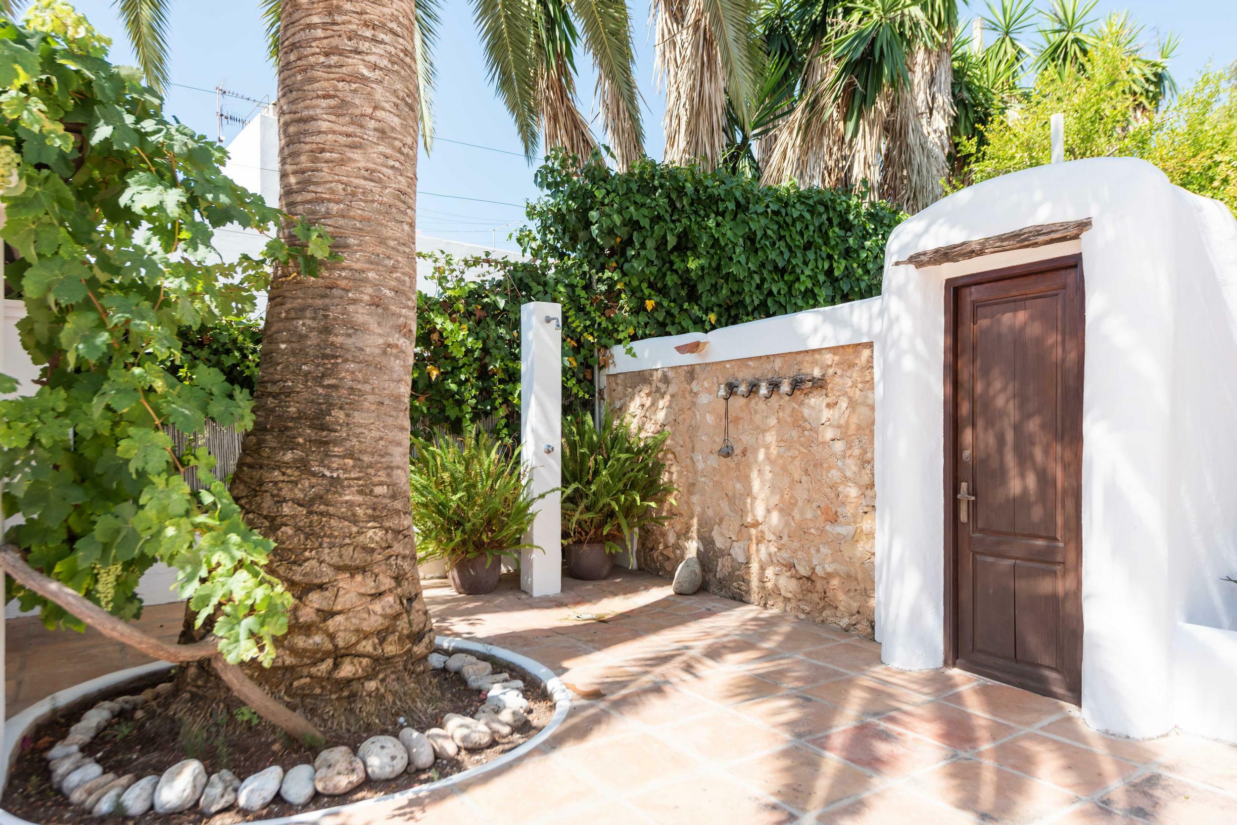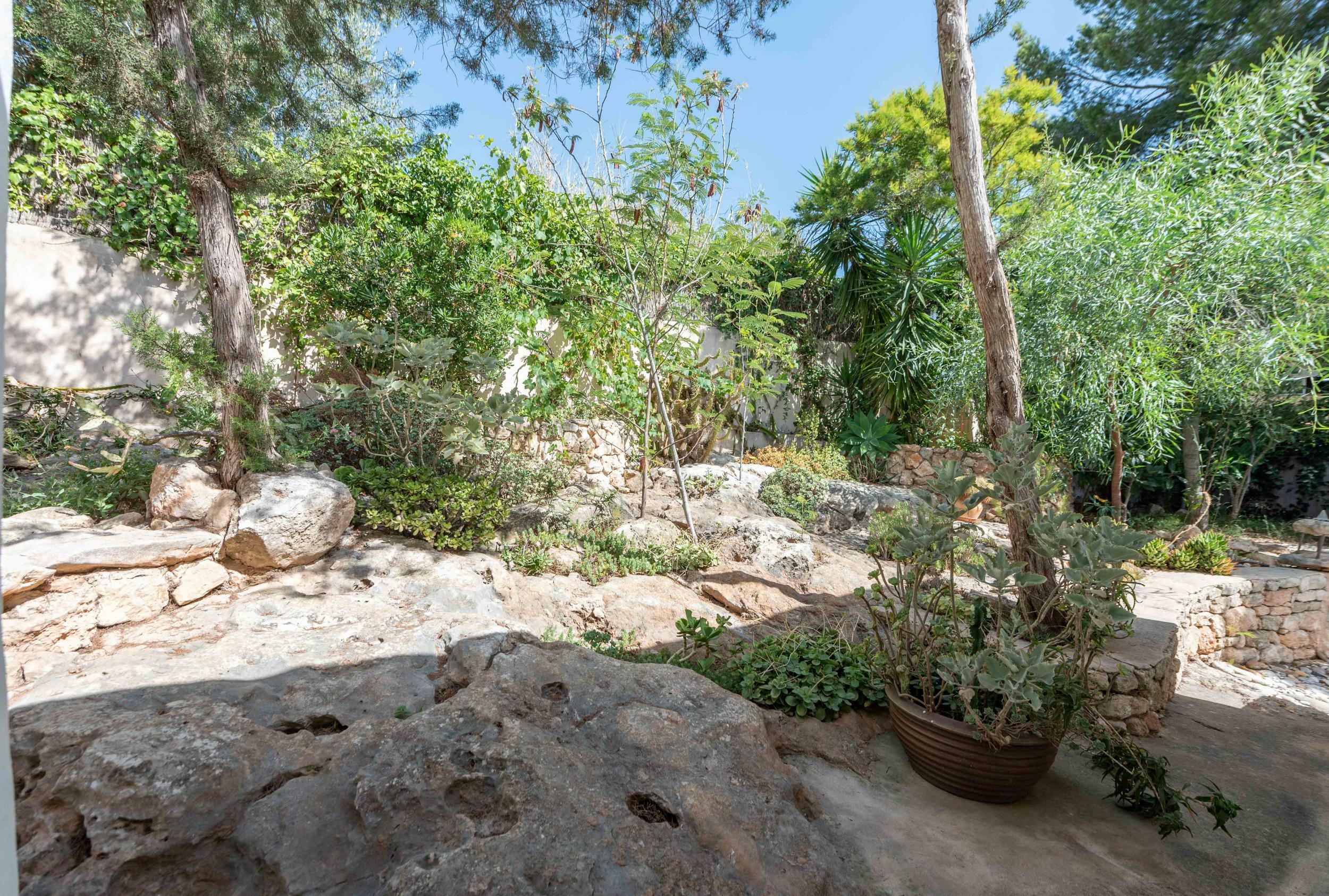 From the garden gate, a private path leads straight to the rocky shoreline and shallow turquoise waters — a rare privilege on Ibiza’s east coast.