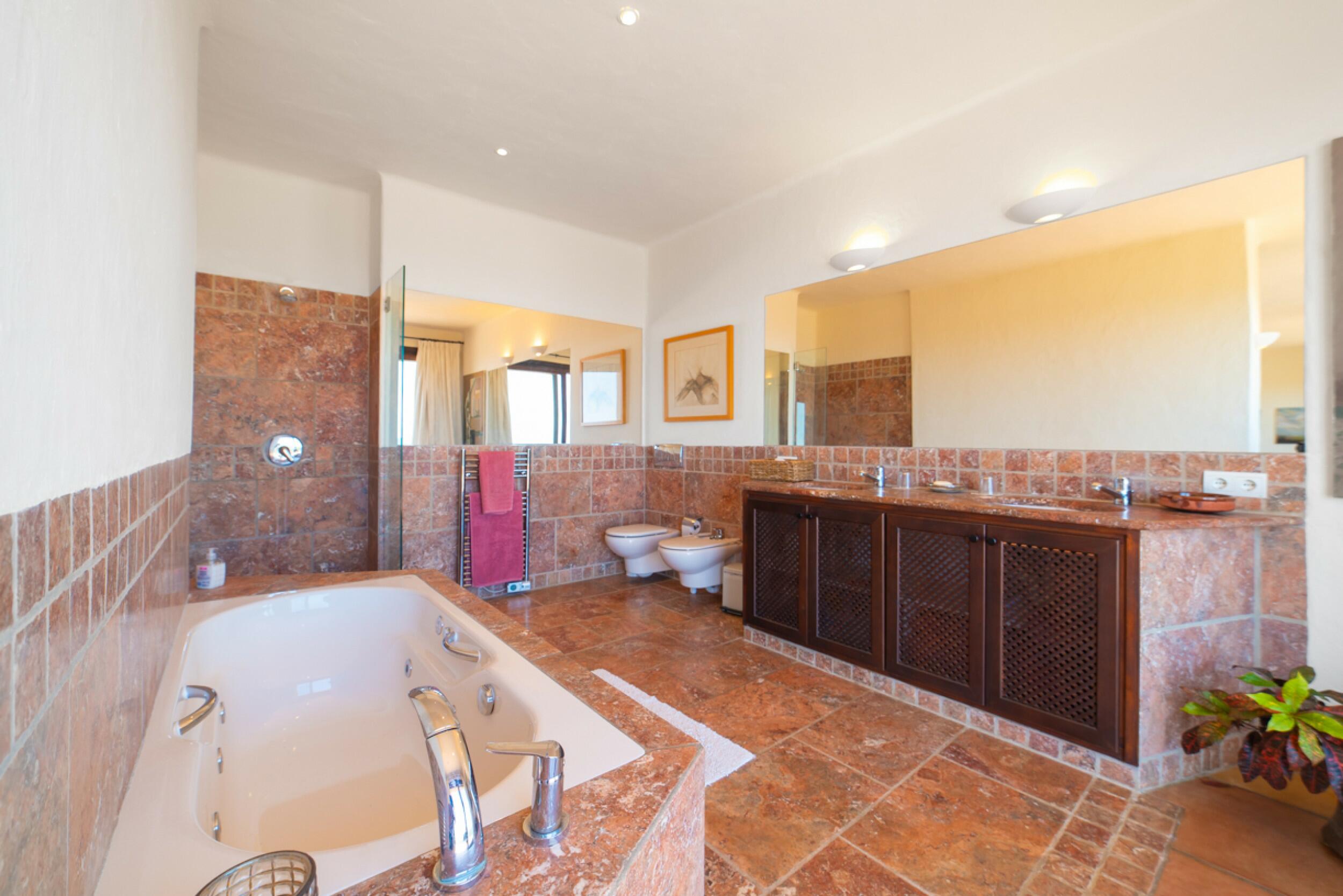 • Main Bedroom: Double bed, en-suite bathroom with bathtub, sea views, TV
