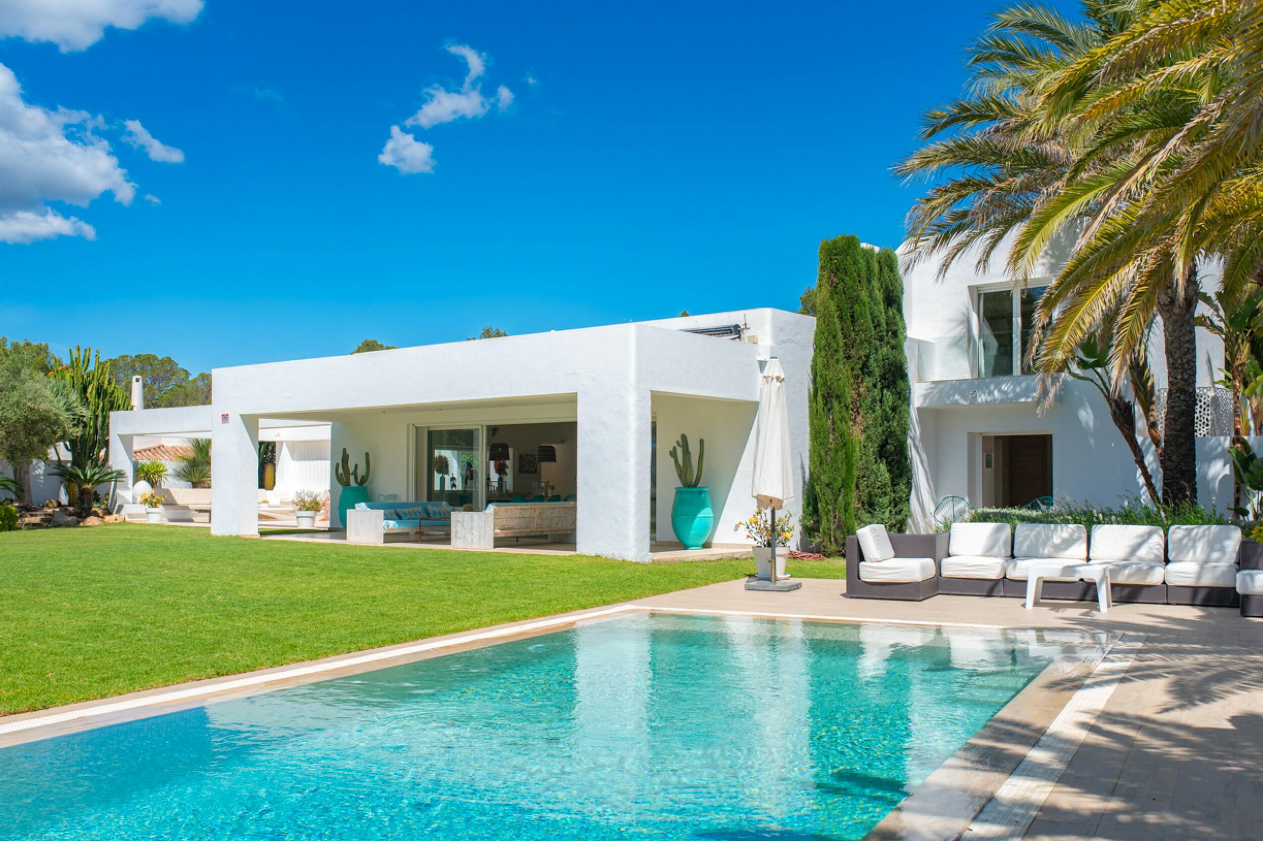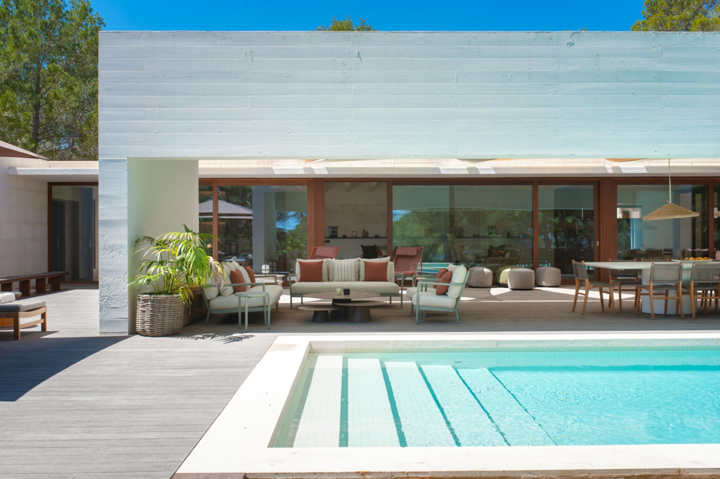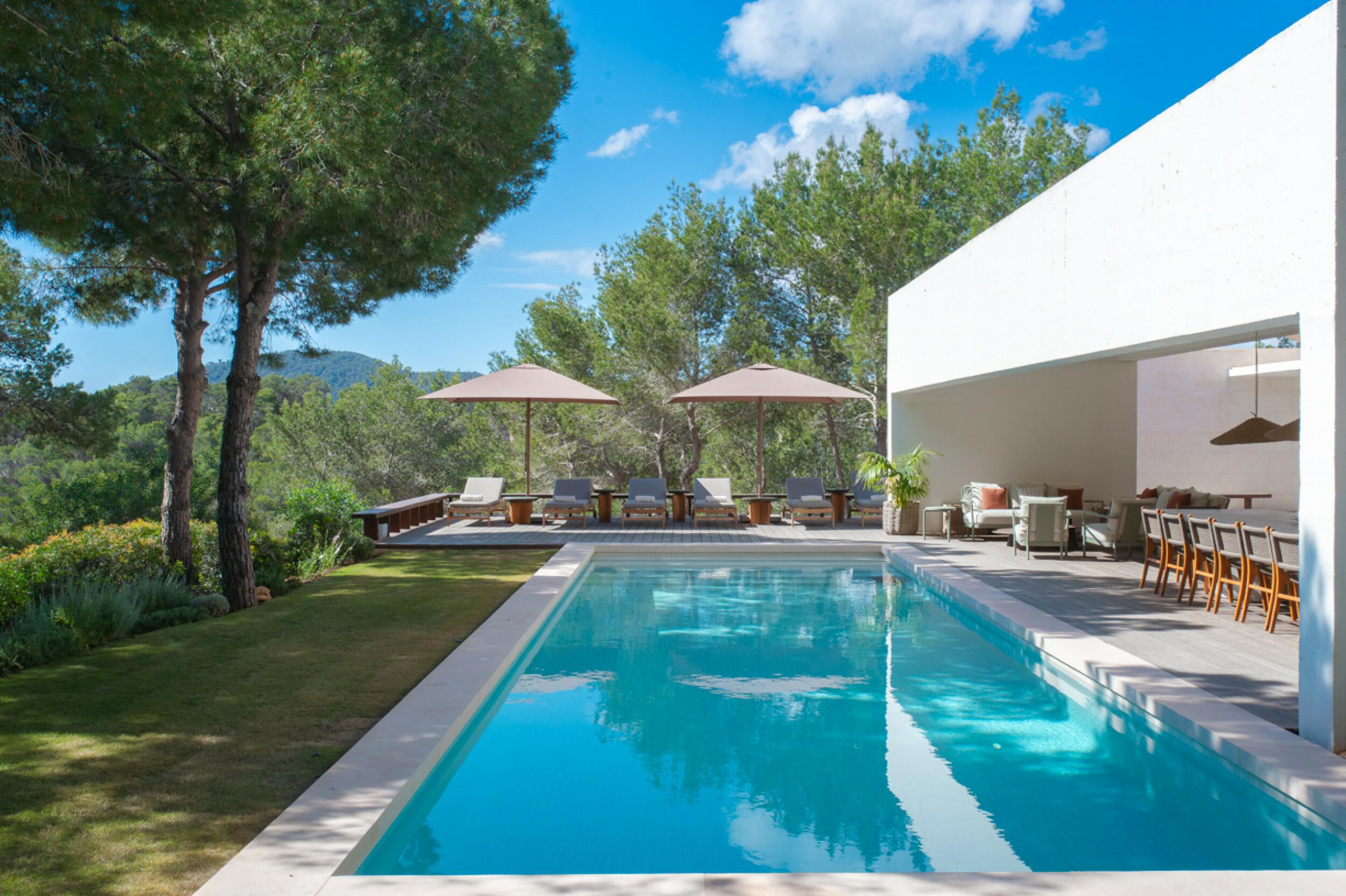 Modern Porroig Ibiza villa with rooftop bar, gym and saltwater pool