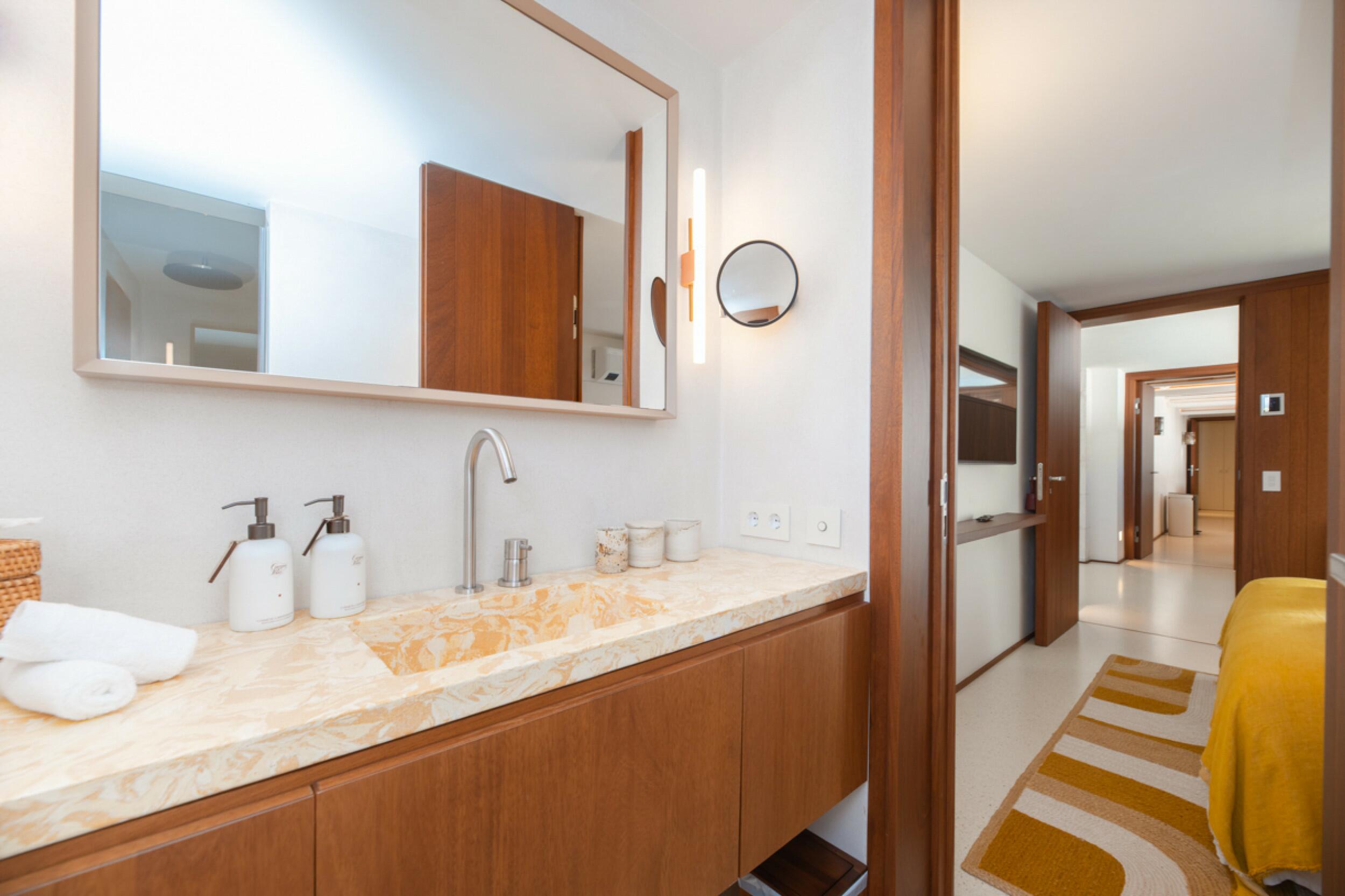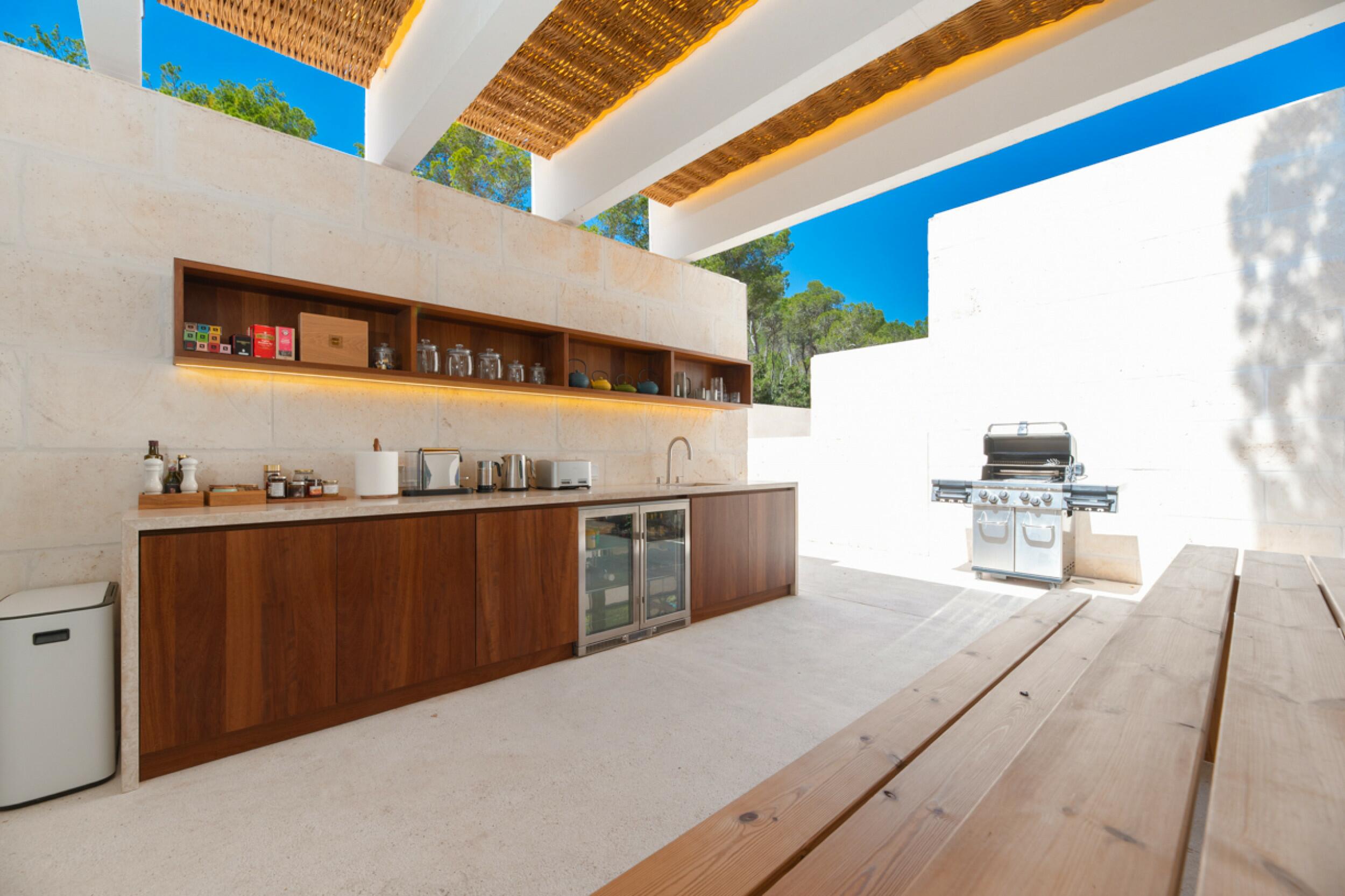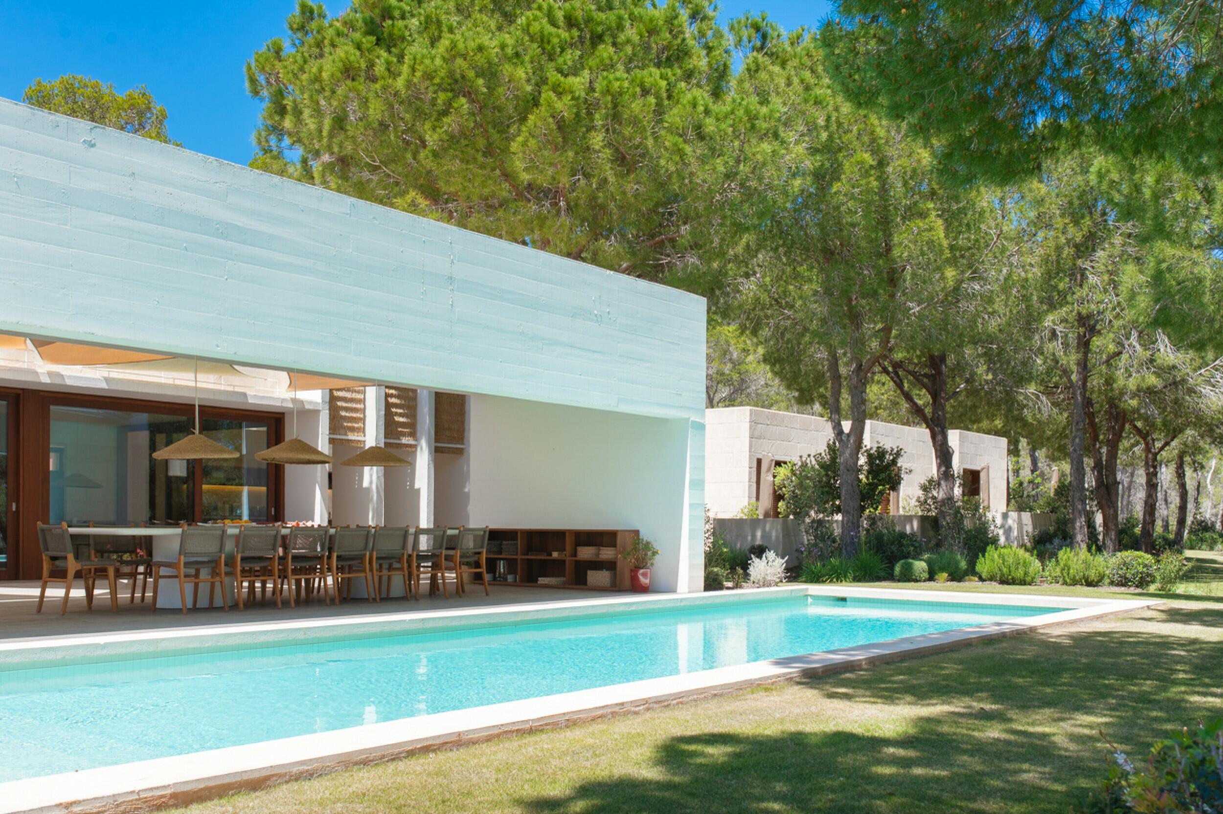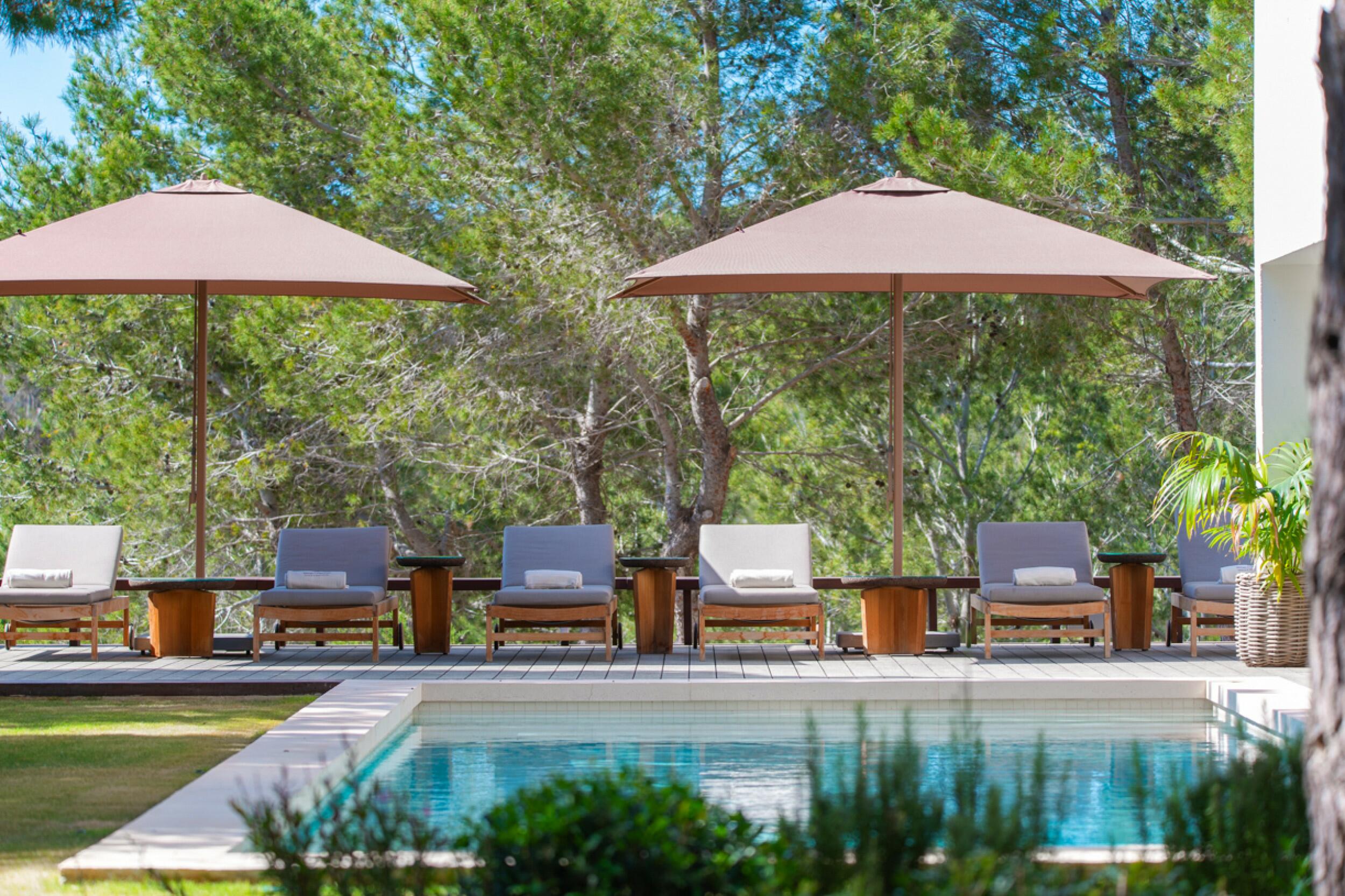 Modern Porroig Ibiza villa with rooftop bar, gym and saltwater pool