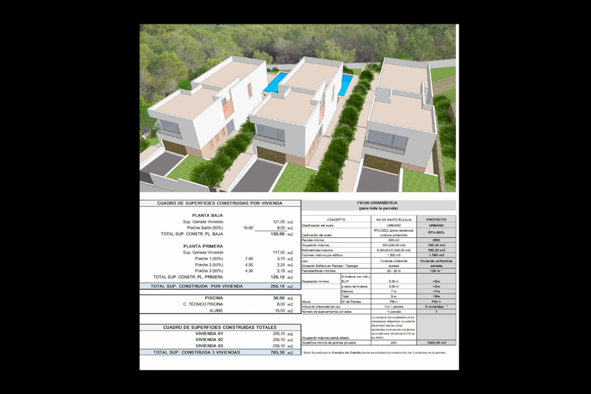 Urban plot near the beach, surrounded by nature with pre-project for 3 villas